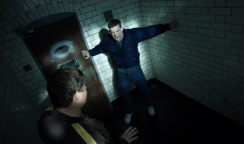 George is taken to the Roath Police Station together with Bob at a fullmoon night. He was caught dogging. George desperately wants to get out because he is afraid that he will kill Bob. At the end Nina get's him out of there.